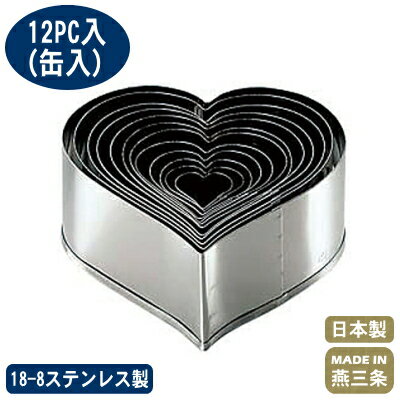 他の中華細工抜き型はこちら! 【商品仕様】 ●サイズ/各抜き型サイズ:約22×23mm/31×32mm/39×38mm/ 47×48mm/60×56mm/64×63mm/72×70mm/80×81mm/ 87×89mm/98×95mm/104×103mm/110×111mm、高さ約45mm ●材質/18-8ステンレス製 ●12点セット(缶入り) ●日本製(新潟県燕三条) ※メーカーに在庫がある場合は3営業日以内に発送させて いただきますが、稀に在庫がない場合もございますので、 お急ぎの場合はお問い合わせください。